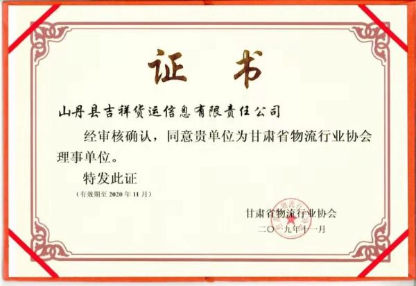 山丹縣吉祥貨運(yùn)信息有限責(zé)任公司入會(huì)成為理事單位