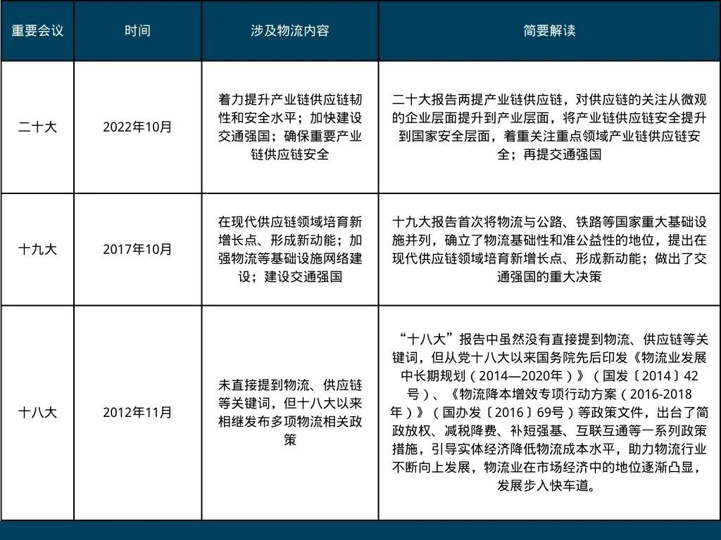 從“十八大”到“二十大”物流地位逐漸提升