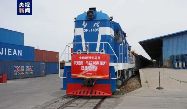 26日14時(shí)30分許,由甘肅(武威)國際陸港組織發(fā)運(yùn)的2023年首列出口班列從武威南站駛出,發(fā)往烏茲別克斯坦首都塔什干。