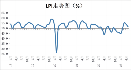 中國物流與采購聯(lián)合會(huì)發(fā)布的2023年5月份中國物流業(yè)景氣指數(shù)為51.5%,較上月回落2.3個(gè)百分點(diǎn);中國倉儲(chǔ)業(yè)指數(shù)為51.3%,較上月下降2.4個(gè)百分點(diǎn)。