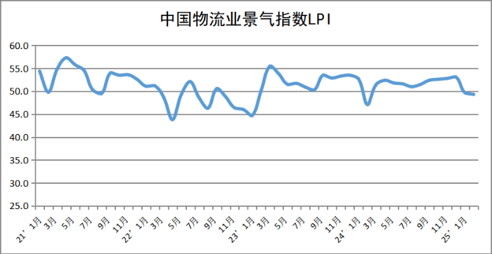 中國物流與采購聯(lián)合會發(fā)布的2025年2月份中國物流業(yè)景氣指數(shù)為49.3%,較上月回落0.4個百分點;中國倉儲指數(shù)為50.2%,較上月回落2.3個百分點。